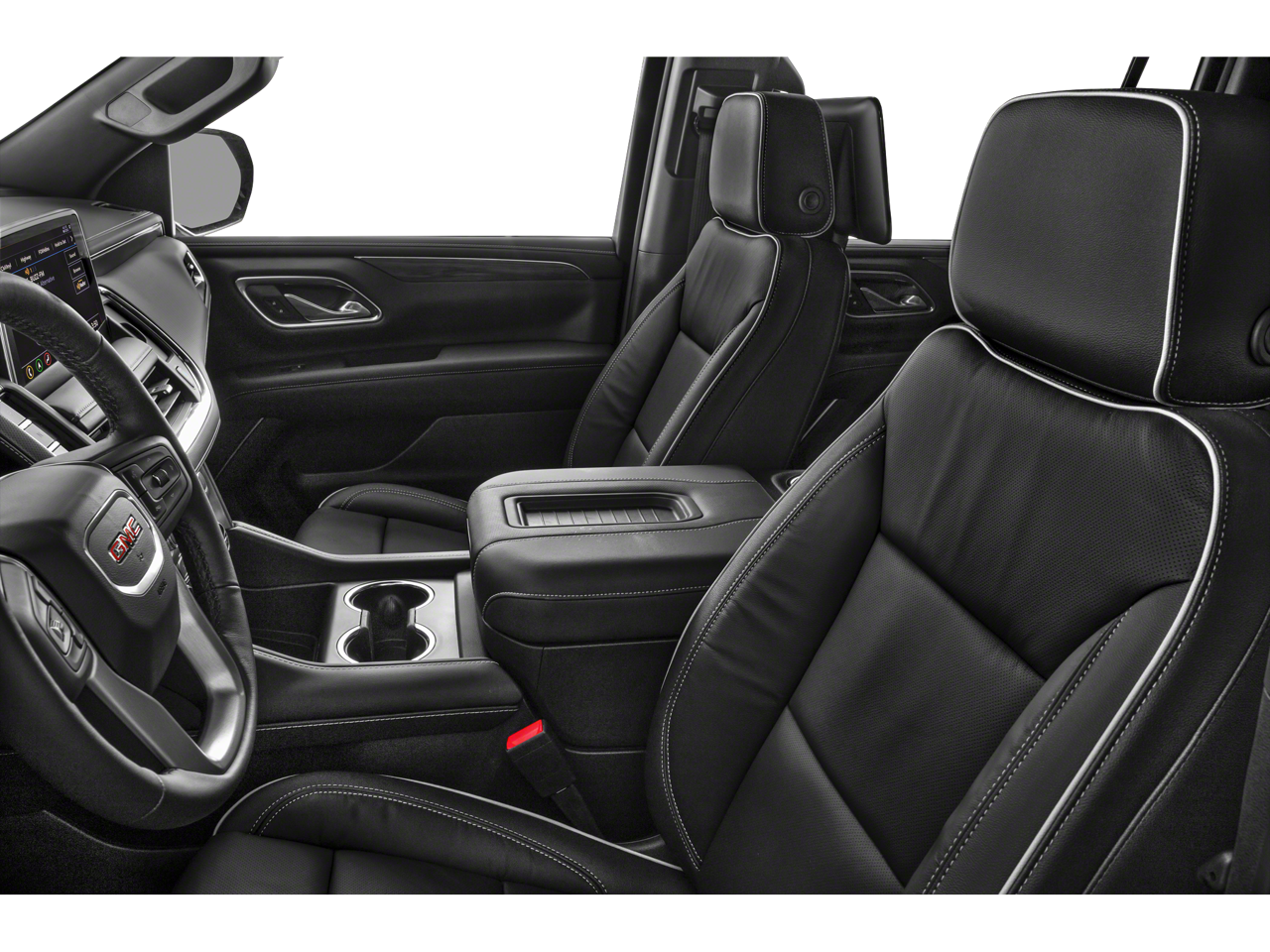 AUDIO SYSTEM, 10.2'' DIAGONAL GMC INFOTAINMENT SYSTEM WITH NAVIGATION, EMISSIONS, FEDERAL REQUIREMENTS, Fixed Running Boards, INTERIOR TRIM, JET BLACK, JET BLACK, PERFORATED LEATHER-APPOINTED SEAT TRIM, LICENSE PLATE FRONT MOUNTING PACKAGE, LPO, 22'' (55.9 CM) MULTI-SPOKE GLOSS BLACK WHEELS, Navigation System, NOT EQUIPPED WITH AUTOMATIC STOP/START, SEE DEALER FOR DETAILS, NOT EQUIPPED WITH STEERING COLUMN LOCK, REAR AXLE, 3.23 RATIO, Rear Entertainment System, REAR MEDIA AND NAV PACKAGE, REAR SEAT MEDIA SYSTEM, SATIN STEEL METALLIC, SEATS, SECOND ROW BUCKET, MANUAL-FOLDING, SLT PREFERRED EQUIPMENT GROUP, SUNROOF, POWER PANORAMIC, DUAL-PANE, TIRES, 275/50R22SL ALL-SEASON, BLACKWALL, Towing/Camper Pkg, W/out Heated Rear Seats, W/out Power 3rd Row Seat, WHEELS, 22'' X 9'' INTERIM, 4-wheel drive,Remote start,Defogger, rear-window electric,Steering wheel, leather-wrapped,Mirror, inside rearview auto-dimming,Steering, power,Floor covering, color-keyed carpeting,Cooling, auxiliary external transmission oil cooler, heavy-duty air-to-oil,Suspension, front coil-over-shock with stabilizer bar,Suspension, rear multi-link with coil springs,Tire carrier, lockable outside spare winch-type mounted under frame at rear,Wipers, front intermittent, Rainsense,Universal Home Remote includes garage door opener, programmable,Visors, driver and front passenger illuminated vanity mirrors,Wiper, rear intermittent,HD radio,Hill start assist,Headlamps, LED,Mechanical jack with tools,Glass, deep-tinted,Theft-deterrent system, electrical, unauthorized entry,Rear axle, 3.23 ratio,Lighting, interior with dome light driver- and passenger-side door switch with delayed entry feature, cargo lights, door handle or Remote Keyless Entry-activated illuminated entry and map lights in front and second seat positions,Mirror caps, body-color,Glass, windshield shade band,Glass, acoustic, laminated windshield,Console, floor with storage area, cup holders,Daytime Running Lamps, LED,Following Distance Indicator,Rear seat reminder,Safety Alert Seat,Keyless Start, push-button,Lamps, stop and tail, LED,Electronic Precision Shift,Airbags, Frontal airbags for driver and front outboard passenger; Seat-mounted side-impact airbags for driver and front outboard passenger; Driver inboard seat-mounted side-impact airbag; Head-curtain airbags for all rows in outboard seating positions (Always use seat belts and child restraints. Chi,Front outboard Passenger Sensing System for frontal outboard passenger airbag (Always use seat belts and child restraints. Children are safer when properly secured in a rear seat in the appropriate child restraint. See the Owner's Manual for more information.),Brakes, 4-wheel antilock, 4-wheel disc with DURALIFE rotors,Hitch Guidance,Driver Information Center, enhanced, 8" diagonal multi-color digital display includes analog speedometer and tachometer gauges,GMC Connected Access capable (Subject to terms. See onstar.com or dealer for details.),Teen Driver a configurable feature that lets you activate customizable vehicle settings associated with a key fob, to help encourage safe driving behavior. It can limit certain available vehicle features, and it prevents certain safety systems from being turned off. An in-vehicle report card gives y,Engine air filtration monitor,Differential, mechanical limited-slip,Engine, 5.3L EcoTec3 V8 with Dynamic Fuel Management, Direct Injection and Variable Valve Timing, includes aluminum block construction (355 hp [265 kW] @ 5600 rpm, 383 lb-ft of torque [518 Nm] @ 4100 rpm),Cooling, external engine oil cooler, heavy-duty air-to-oil integral to driver side of radiator (Deleted when (LM2) Duramax 3.0L Turbo-Diesel I6 engine is ordered.),Alternator, 220 amps (Standard with (L84) 5.3L EcoTec3 V8 engine only.),Active aero shutters, upper (Standard with (L84) 5.3L EcoTec3 V8 engine only.),Fascia, front,Seat adjusters, 12-way power includes 8-way power driver and front passenger seats with 4-way power lumbar,Power outlet, front auxiliary, 12-volt, located in the center stack of instrument panel,Assist handles, overhead, driver and front passenger, located in headliner,Trailering equipment, heavy-duty includes trailering hitch platform, 7-wire harness with independent fused trailering circuits mated to a 7-way connector and 2" trailering receiver,Fog lamps, front LED,Glass, driver and front passenger laminated front door window,Liftgate, rear power programmable hands-free with GMC logo projection,Door handles, chrome with body-color strip,USB charging-only ports, 4, (2) located on rear of center console and (2) in 3rd row,Power outlets, 2, 120-volt located on the rear of the center console and rear cargo area,Exhaust, single system, single-outlet,Audio system feature, Bose 9-speaker stereo
