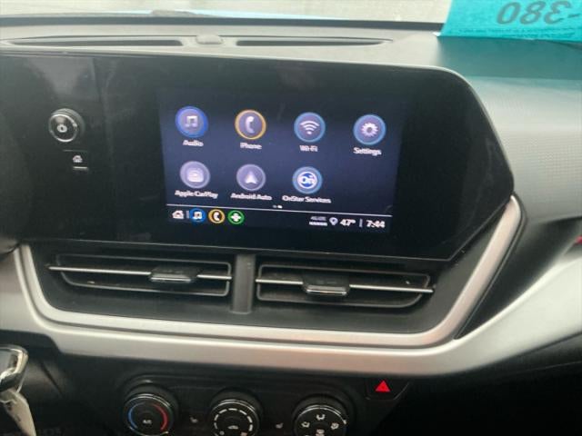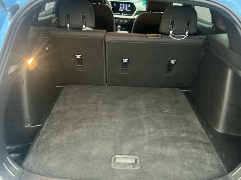 1RS PREFERRED EQUIPMENT GROUP, Aluminum/Alloy Wheels, AXLE, 3.50 FINAL DRIVE RATIO, DRIVER CONFIDENCE PACKAGE, Driver Confidence Pkg., EMISSIONS, FEDERAL REQUIREMENTS, FOUNTAIN BLUE, Heated Exterior Mirrors, Heated Front Seats, JET BLACK/GRAY WITH RED ACCENTS, CLOTH SEAT TRIM, LANE CHANGE ALERT WITH SIDE BLIND ZONE ALERT, LICENSE PLATE FRONT MOUNTING PACKAGE, REAR CROSS TRAFFIC ALERT, REAR PARK ASSIST, Rear Parking Sensors, Remote Engine Starter, Remote start,Door handles, body-color,Brakes, 4-wheel antilock, 4-wheel disc,Air conditioning, single-zone manual,Defogger, rear-window electric,Mirror, inside rearview manual day/night,Visors, driver and front passenger vanity mirrors, covered,Seat, rear 60/40 split-folding,Drivetrain, front-wheel drive,Seats, heated driver and front passenger,Assist handle, front passenger,StabiliTrak, stability control system,Suspension, Ride and Handling,Spoiler, rear,Headlamp control, automatic on and off,Steering wheel, heated,Antenna, roof-mounted,Shift knob, urethane,Audio system feature, 4-speaker system,Mirrors, outside heated power-adjustable, manual-folding,Wiper, rear, intermittent,Assist handles, rear outboard,Lamp, center high-mounted stop/brake (CHMSL),Seat adjuster, front passenger 4-way manual,Suspension, front MacPherson strut,Steering, power, non-variable ratio, electric,Brake, electronic parking,Headlamps, LED,Mechanical jack with tools,Steering column, tilt and telescoping,Glass, deep-tinted,Alternator, 130 amps,Seat adjuster, driver 6-way manual,Theft-deterrent system, immobilizer,Suspension, rear, compound crank,Lighting, rear cargo compartment lamp,Lighting, interior, overhead courtesy lamp,Active Noise Cancellation,Braking control, ECM grade,Liftgate, manual,Wheel, spare, 16" (40.6 cm) steel,Keys, (2) foldable,Recovery hook, front,Coolant protection, engine,Lighting, interior, roof, rear courtesy,Capless Fuel Fill,Rear seat reminder,Axle, 3.50 final drive ratio,Head restraints, front, 2-way adjustable,Mirror caps, high gloss Black,Driver Information Center, 3.5" diagonal monochromatic display,Chevrolet Connected Access capable (Subject to terms. See onstar.com or dealer for details.),LATCH system (Lower Anchors and Tethers for CHildren), for child restraint seats,Teen Driver a configurable feature that lets you activate customizable vehicle settings associated with a key fob, to help encourage safe driving behavior. It can limit certain available vehicle features, and it prevents certain safety systems from being turned off. An in-vehicle report card gives y,Engine air filtration monitor,Knee bolster, driver and front passenger,Brake lining, performance,Air filter, pollutant,Tires, 225/55R18 all-season, blackwall,Ornamentation, RS badge,Console, floor with armrest,Wi-Fi Hotspot capable (Terms and limitations apply. See onstar.com or dealer for details.),Vehicle health management,HD Rear Vision Camera (Rear Vision Camera display is not HD with IOR audio system.),Engine, ECOTEC 1.2L Turbo DOHC DI with Variable Valve Timing (VVT) (137 hp [102 kW] @ 5000 rpm, 162 lb-ft of torque [219 N-m] @ 2500 rpm),GVWR, 4145 lbs. (1880 kg),Battery, 70AH, 12V, 760 cold-cranking amps,Brake rotor, FNC,Exhaust tip, turned down, hidden,Tire, spare, compact,Fascia, front and rear, inserts,Moldings, Black, side windows surround,Moldings, body-side, lower, extra wide, molded in Black,Wipers, front intermittent, variable speed,Glass, tinted windshield,Ornamentation, Trax lettering,SiriusXM, enjoy a Platinum Plan trial subscription (IMPORTANT: The SiriusXM trial package is not provided on vehicles that are ordered for Fleet Daily Rental ("FDR") use. Trial subscription is subject to the SiriusXM Customer Agreement and privacy policy, visit www.siriusxm.com which includes full t,Head restraints, rear, height adjustable,USB ports, 2, one type-A and one type-C, located within the instrument panel,Power outlet, 12-volt, located on instrument panel,Following Distance Indicator (Included with (PED) Chevy Safety Assist.),Seat belts, 3-point, all seating positions with front tensioners,Buckle to Drive prevents vehicle from being shifted out of Park until driver seat belt is fastened, programmable,LS Convenience Package,Exterior trim, RS, Black front and rear bowties, Black grille insert,Steering wheel, wrapped, flat-bottom,Daytime Running Lamps, reduced intensity low beam, LED